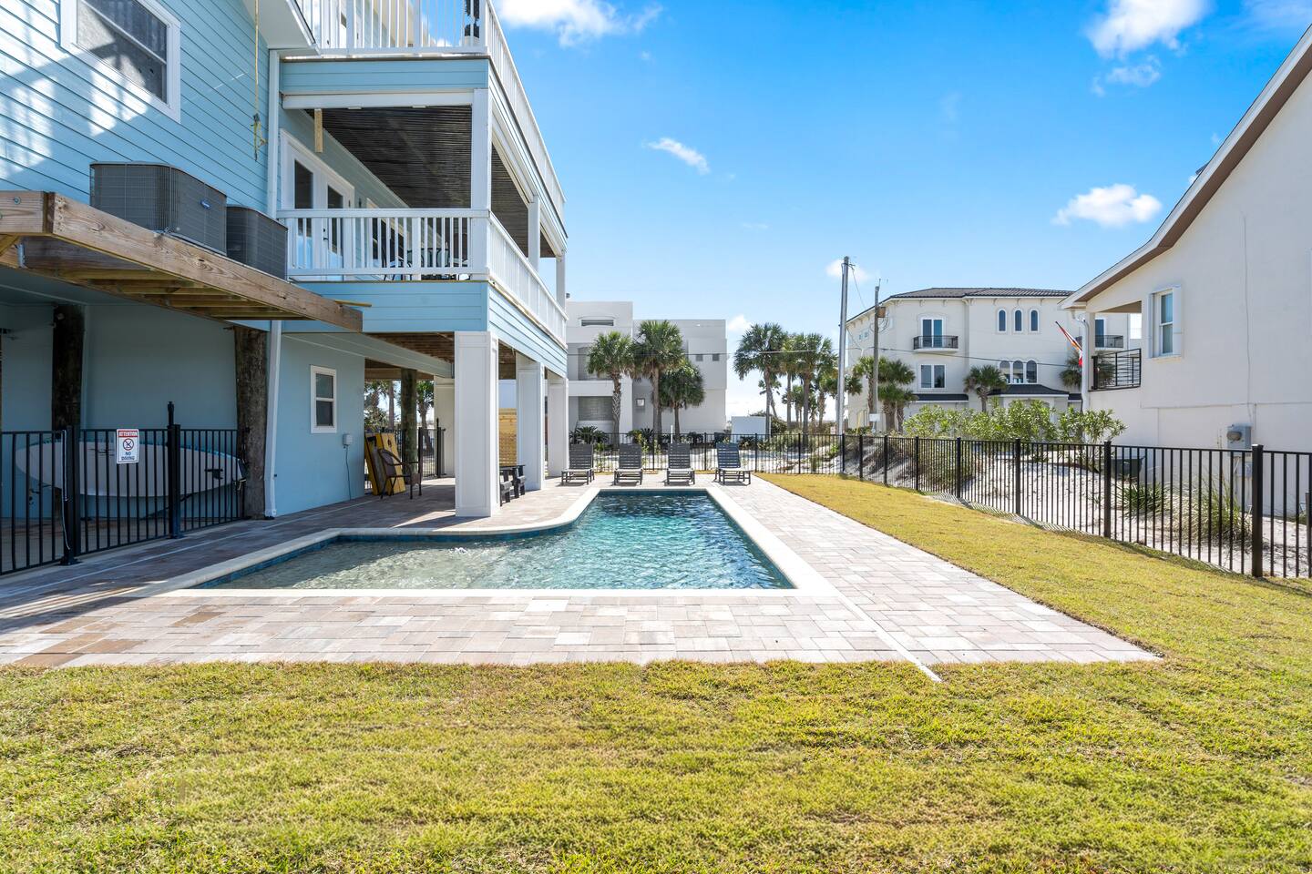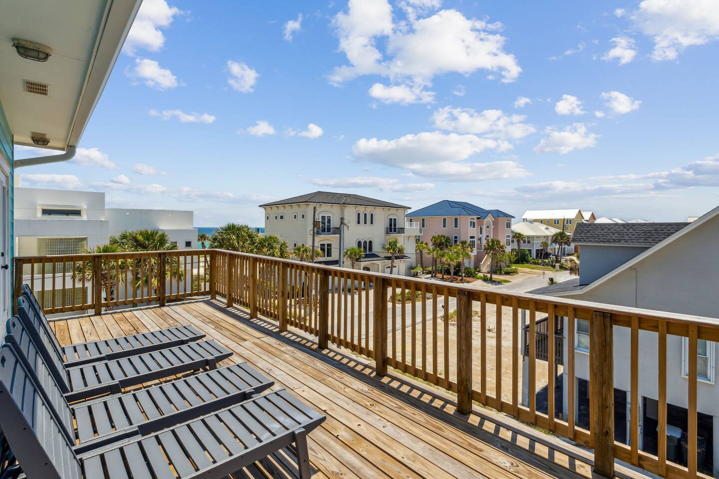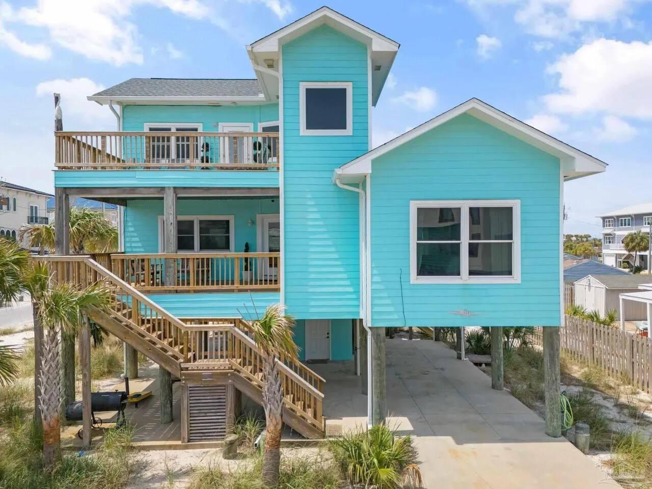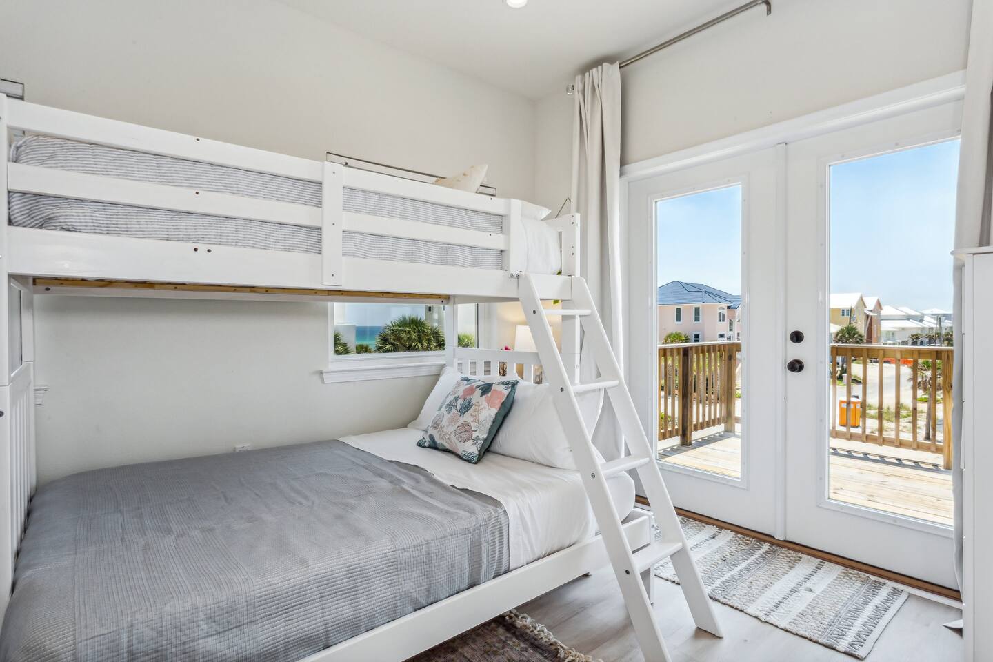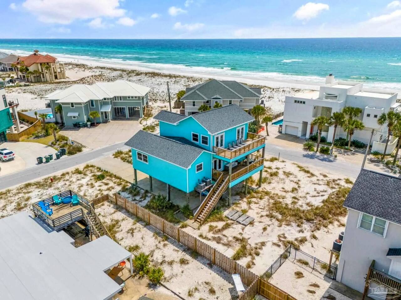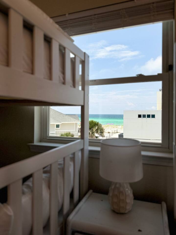 Welcome to Blue Horizon, your dream beach getaway just 20 steps from the white sands of Pensacola Beach! With beautiful gulf views from nearly every room and your own private pool, this is the perfect location for your next trip. Our home is designed to feel inviting for all our guests, even those with tiny toes or four legs. When you step inside, you're greeted by a bright, spacious, and open living space, dining area, and modern kitchen, all flooded with natural light. Look out the windows to see the turquoise Gulf waters just across the street! The main living area boasts comfortable seating and a Smart TV with streaming apps, including our logins for Disney+ and Hulu. The dining table seats eight, with additional seating at the kitchen bar counter. The kitchen is fully stocked with appliances, a spice drawer, and the basics you need to prepare your meals. We also provide a starter supply of coffee and creamer. Down the hall, you'll find a full bathroom and a full-size washer and dryer. This area is also stocked with a blow dryer, steamer, iron, ironing board, and beach towels. The main floor also includes a large bedroom with a fabulous King bed, a Smart TV, and another beautiful water view from its floor-length window. This level features two large decks, one on each end of the home, both offering stunning gulf views. Heading upstairs, you'll find two more bedrooms. One features an inviting King bed, a Smart TV, and French doors leading to a deck where you can catch a beautiful sunset over the Sound or gaze at the Gulf. The second bedroom offers more Gulf views and contains two twin-over-full bunk beds. Both rooms share access to the deck and a bathroom with a walk-in shower. An additional large deck with sun loungers is the perfect spot to soak in the sun as you listen to the waves. Sleeping Arrangements: Bedroom #1 - King bed Bedroom #2 - King bed Bedroom #3 - Two full over twin bunk beds Your Private Outdoor Oasis: The ground level is your hub for outdoor fun! Take a dip in the newly built heated private pool, enjoy a meal at the picnic table, or play a game of cornhole. You'll also find an outdoor rinse-off shower and a grill. Family-Friendly Amenities: - Two Pack 'n Plays with sheets - Portable high chairs and foldable beach/high chairs - Sound machine and a non-WiFi baby monitor - Baby/toddler utensils, cups, and plates - Infant-to-toddler bath and removable wand shower head - Extra blackout curtains, bed bumpers, a baby gate, and outlet covers Beach Gear Provided: - 8 backpack beach chairs - 10 beach towels - Neso beach shade tent and a beach blanket - 3 boogie boards and 1 SUP paddleboard - Beach cart, cooler, sand toys, and sports balls The Neighborhood Our home is perfectly located in a friendly, quiet neighborhood ideal for walking and biking. We're, just a quick walk from numerous cafes, restaurants, and shops. We're are a handful of steps from the sugar-white sand, with public beach access directly across from our yard. We're also just a short walk or bike ride from the Sound, Baby Beach, and numerous cafes, restaurants, and shops along Via De Luna. We have full-time neighbors, so it's important that our guests respect the peaceful atmosphere. Getting Around With direct beach access and shops nearby, the area is very walkable. The local trolley stops are also close and can take you up and down the main strip. For exploring further, the driveway comfortably fits 3 large vehicles. House Rules - To ensure a wonderful stay for you and our neighbors, we ask that you please observe the following rules: - No smoking is permitted anywhere on the property. A fee for cleaning and odor removal will be charged. - No parties or events are permitted. - Overnight guests must not exceed the number listed on the reservation. - Please respect our neighbors and abide by the 10:00 p.m. noise curfew. Noise violations may be grounds for eviction. - We happily welcome well-behaved dogs for a flat fee (per dog; 2 max dogs max). You are responsible for any damage or additional cleaning fees. - Please treat our home and amenities as if they were your own. Important Information - Connectivity: High-speed WiFi is available throughout the home. - Pool Heating: The private pool can be heated upon request for an additional daily fee. Please let us know at the time of booking if you'd like to add this. - Bunk Beds: For safety, the upper bunk beds have a maximum weight limit of 175 pounds. - Grill: Charcoal & gas grills are available for your use. We do not provide charcoal or propane, but previous guests often leave their leftovers. - Check-in/Out: Check-in is 4:00 p.m. and check-out is 10:00 a.m. We may be able to accommodate an early check-in or late check-out if our cleaning schedule allows. - Starter Supplies: We provide starter amounts of laundry detergent, dishwasher tabs, toilet paper, paper towels, trash bags, and coffee to get you settled in. - Ample parking available for 3-4 cars - Smoke alarms, CO2 sensors, and fire extinguishers available - Your Host: I am self-managed, highly responsive host committed to making your stay exceptional. If any issues arise, please don't hesitate to reach out.