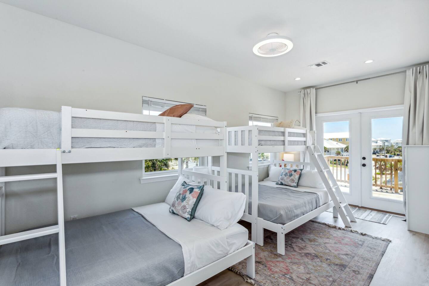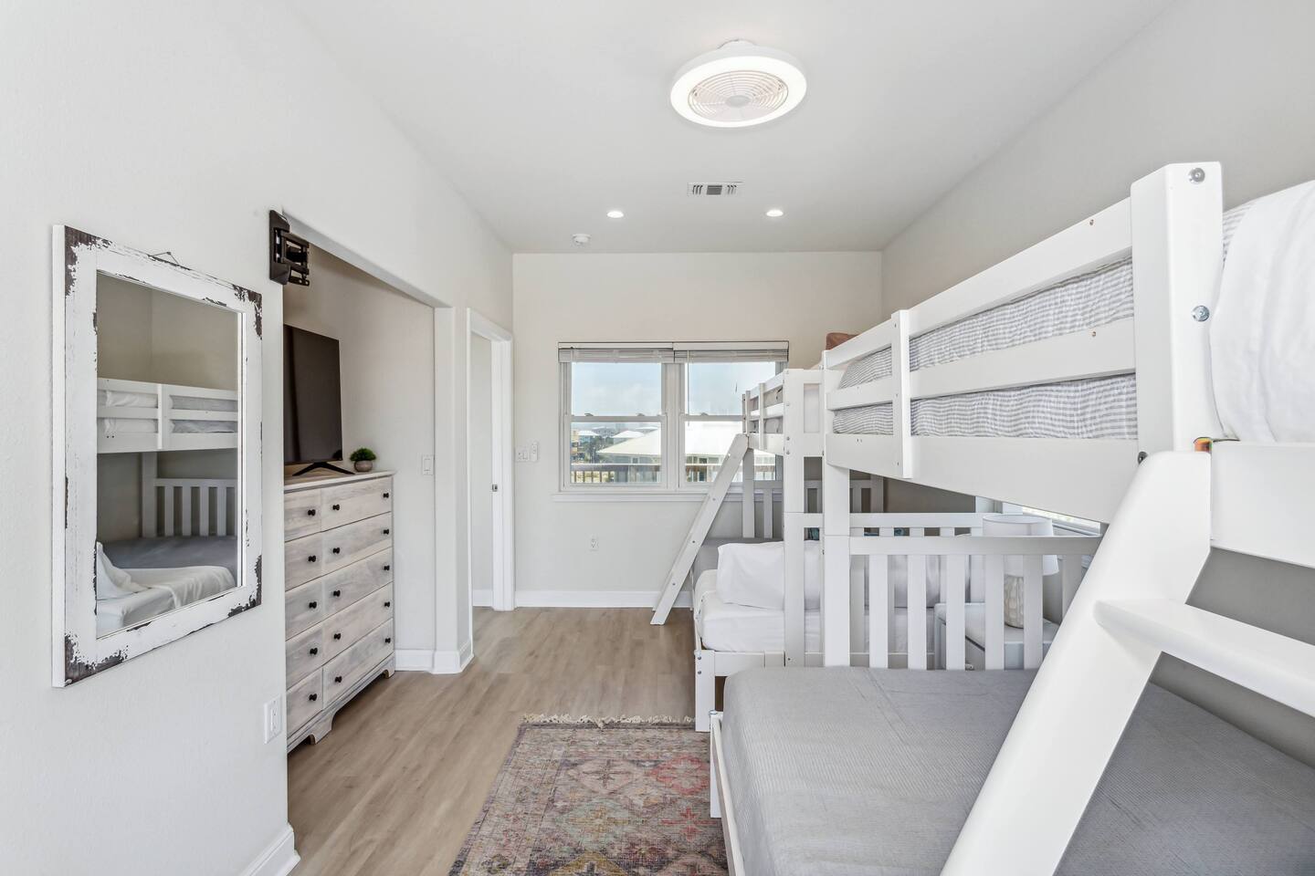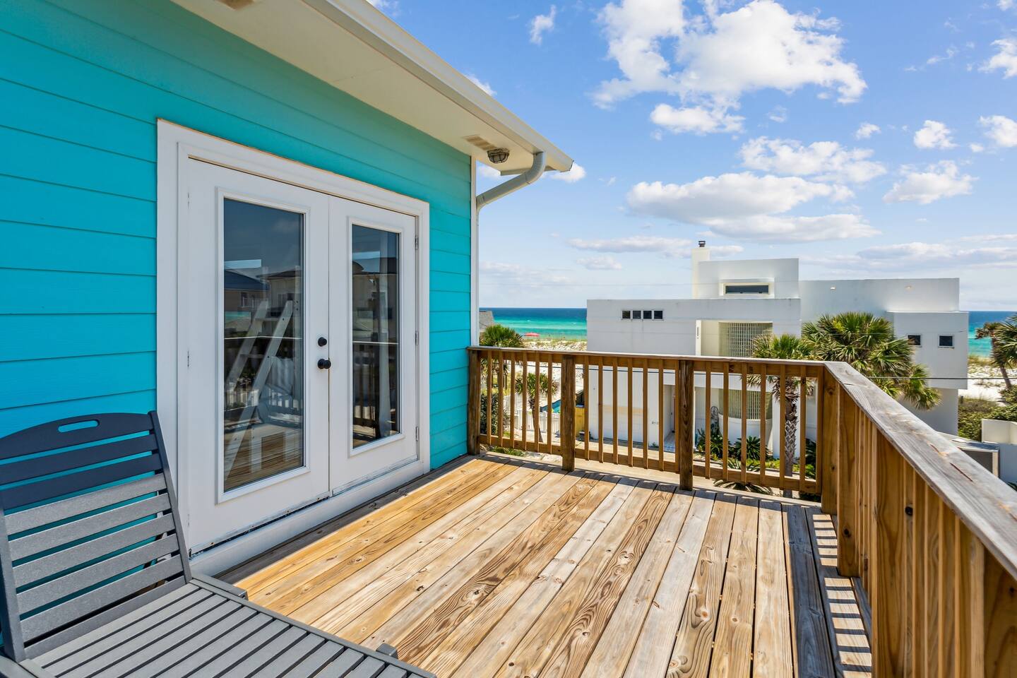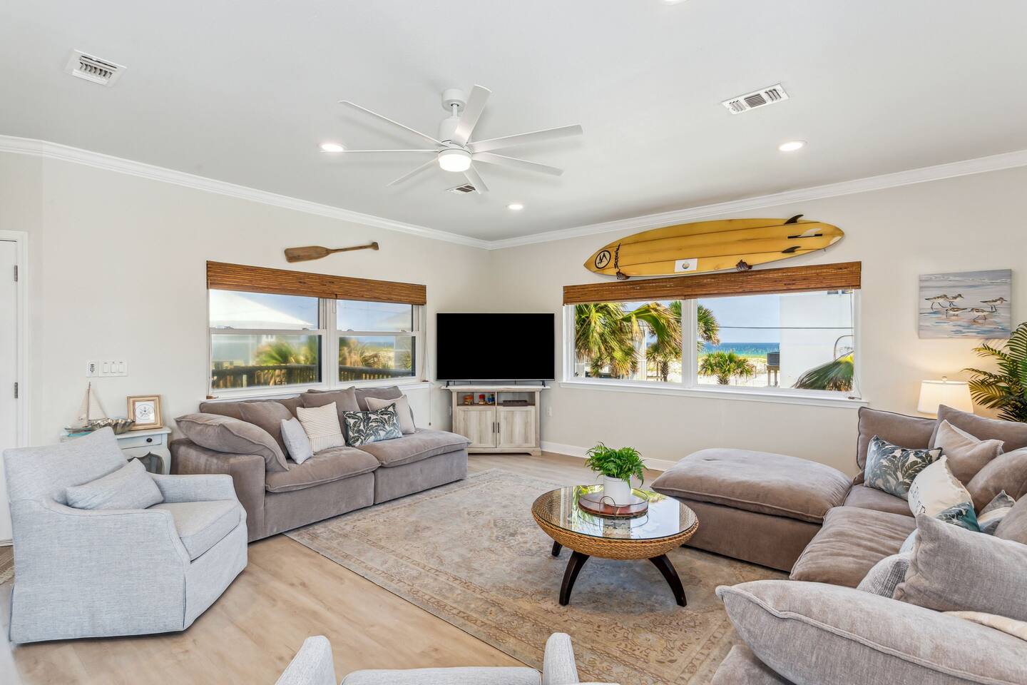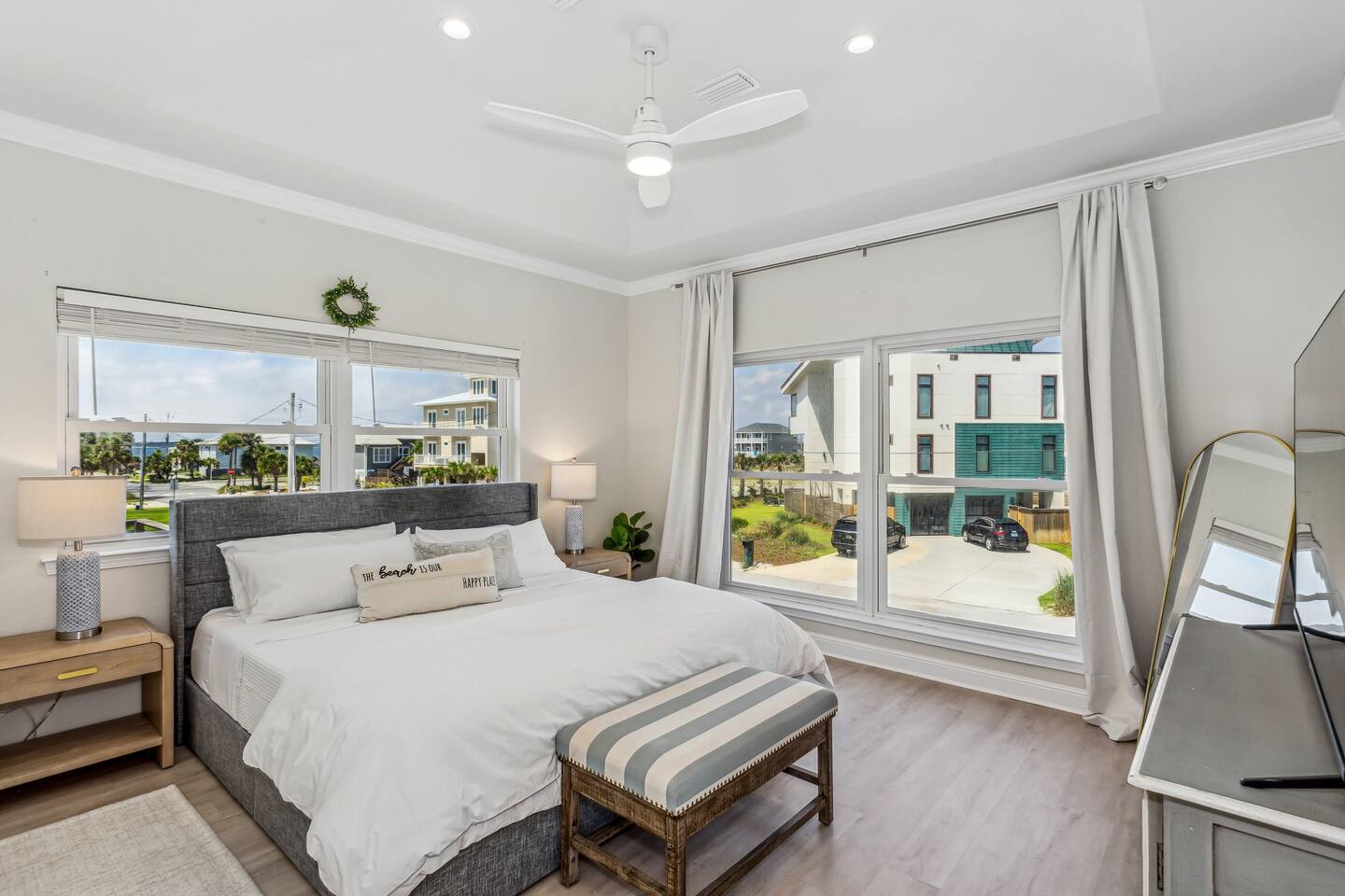 Welcome to Blue Horizon, your dream beach getaway just 20 steps from the white sands of Pensacola Beach! With beautiful gulf views from nearly every room and your own private pool, this is the perfect location for your next trip. Our home is designed to feel inviting for all our guests, even those with tiny toes or four legs. When you step inside, you're greeted by a bright, spacious, and open living space, dining area, and modern kitchen, all flooded with natural light. Look out the windows to see the turquoise Gulf waters just across the street! The main living area boasts comfortable seating and a Smart TV with streaming apps, including our logins for Disney+ and Hulu. The dining table seats eight, with additional seating at the kitchen bar counter. The kitchen is fully stocked with appliances, a spice drawer, and the basics you need to prepare your meals. We also provide a starter supply of coffee and creamer. Down the hall, you'll find a full bathroom and a full-size washer and dryer. This area is also stocked with a blow dryer, steamer, iron, ironing board, and beach towels. The main floor also includes a large bedroom with a fabulous King bed, a Smart TV, and another beautiful water view from its floor-length window. This level features two large decks, one on each end of the home, both offering stunning gulf views. Heading upstairs, you'll find two more bedrooms. One features an inviting King bed, a Smart TV, and French doors leading to a deck where you can catch a beautiful sunset over the Sound or gaze at the Gulf. The second bedroom offers more Gulf views and contains two twin-over-full bunk beds. Both rooms share access to the deck and a bathroom with a walk-in shower. An additional large deck with sun loungers is the perfect spot to soak in the sun as you listen to the waves. Sleeping Arrangements: Bedroom #1 - King bed Bedroom #2 - King bed Bedroom #3 - Two full over twin bunk beds Your Private Outdoor Oasis: The ground level is your hub for outdoor fun! Take a dip in the newly built heated private pool, enjoy a meal at the picnic table, or play a game of cornhole. You'll also find an outdoor rinse-off shower and a grill. Family-Friendly Amenities: - Two Pack 'n Plays with sheets - Portable high chairs and foldable beach/high chairs - Sound machine and a non-WiFi baby monitor - Baby/toddler utensils, cups, and plates - Infant-to-toddler bath and removable wand shower head - Extra blackout curtains, bed bumpers, a baby gate, and outlet covers Beach Gear Provided: - 8 backpack beach chairs - 10 beach towels - Neso beach shade tent and a beach blanket - 3 boogie boards and 1 SUP paddleboard - Beach cart, cooler, sand toys, and sports balls The Neighborhood Our home is perfectly located in a friendly, quiet neighborhood ideal for walking and biking. We're, just a quick walk from numerous cafes, restaurants, and shops. We're are a handful of steps from the sugar-white sand, with public beach access directly across from our yard. We're also just a short walk or bike ride from the Sound, Baby Beach, and numerous cafes, restaurants, and shops along Via De Luna. We have full-time neighbors, so it's important that our guests respect the peaceful atmosphere. Getting Around With direct beach access and shops nearby, the area is very walkable. The local trolley stops are also close and can take you up and down the main strip. For exploring further, the driveway comfortably fits 3 large vehicles. House Rules - To ensure a wonderful stay for you and our neighbors, we ask that you please observe the following rules: - No smoking is permitted anywhere on the property. A fee for cleaning and odor removal will be charged. - No parties or events are permitted. - Overnight guests must not exceed the number listed on the reservation. - Please respect our neighbors and abide by the 10:00 p.m. noise curfew. Noise violations may be grounds for eviction. - We happily welcome well-behaved dogs for a flat fee (per dog; 2 max dogs max). You are responsible for any damage or additional cleaning fees. - Please treat our home and amenities as if they were your own. Important Information - Connectivity: High-speed WiFi is available throughout the home. - Pool Heating: The private pool can be heated upon request for an additional daily fee. Please let us know at the time of booking if you'd like to add this. - Bunk Beds: For safety, the upper bunk beds have a maximum weight limit of 175 pounds. - Grill: Charcoal & gas grills are available for your use. We do not provide charcoal or propane, but previous guests often leave their leftovers. - Check-in/Out: Check-in is 4:00 p.m. and check-out is 10:00 a.m. We may be able to accommodate an early check-in or late check-out if our cleaning schedule allows. - Starter Supplies: We provide starter amounts of laundry detergent, dishwasher tabs, toilet paper, paper towels, trash bags, and coffee to get you settled in. - Ample parking available for 3-4 cars - Smoke alarms, CO2 sensors, and fire extinguishers available - Your Host: I am self-managed, highly responsive host committed to making your stay exceptional. If any issues arise, please don't hesitate to reach out.