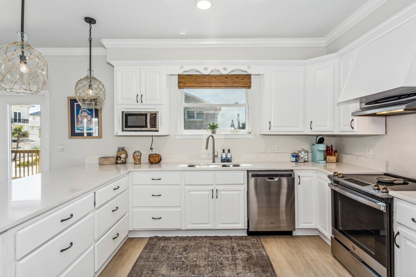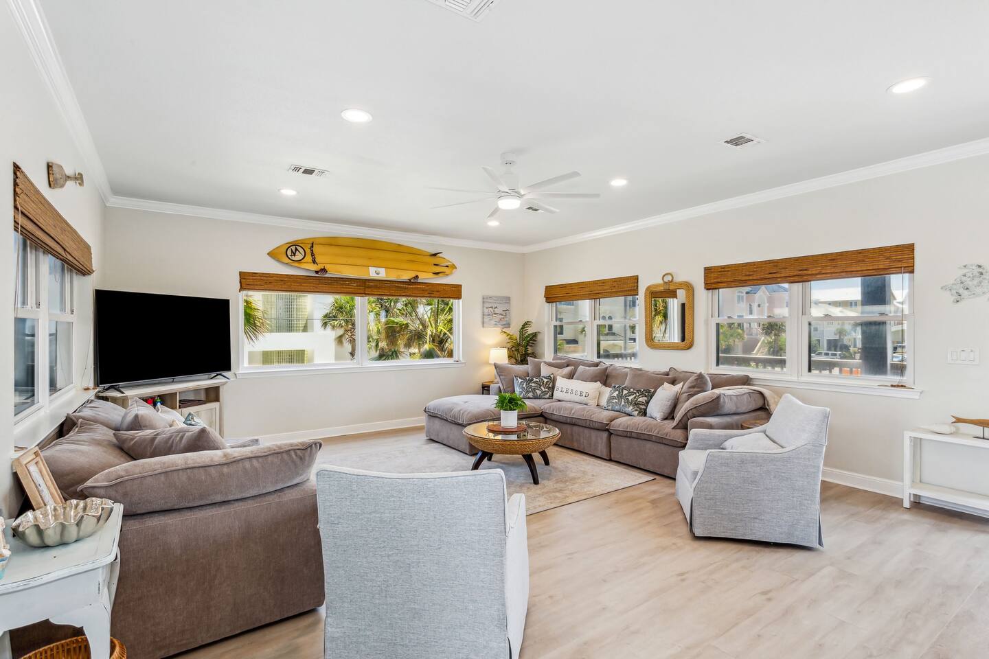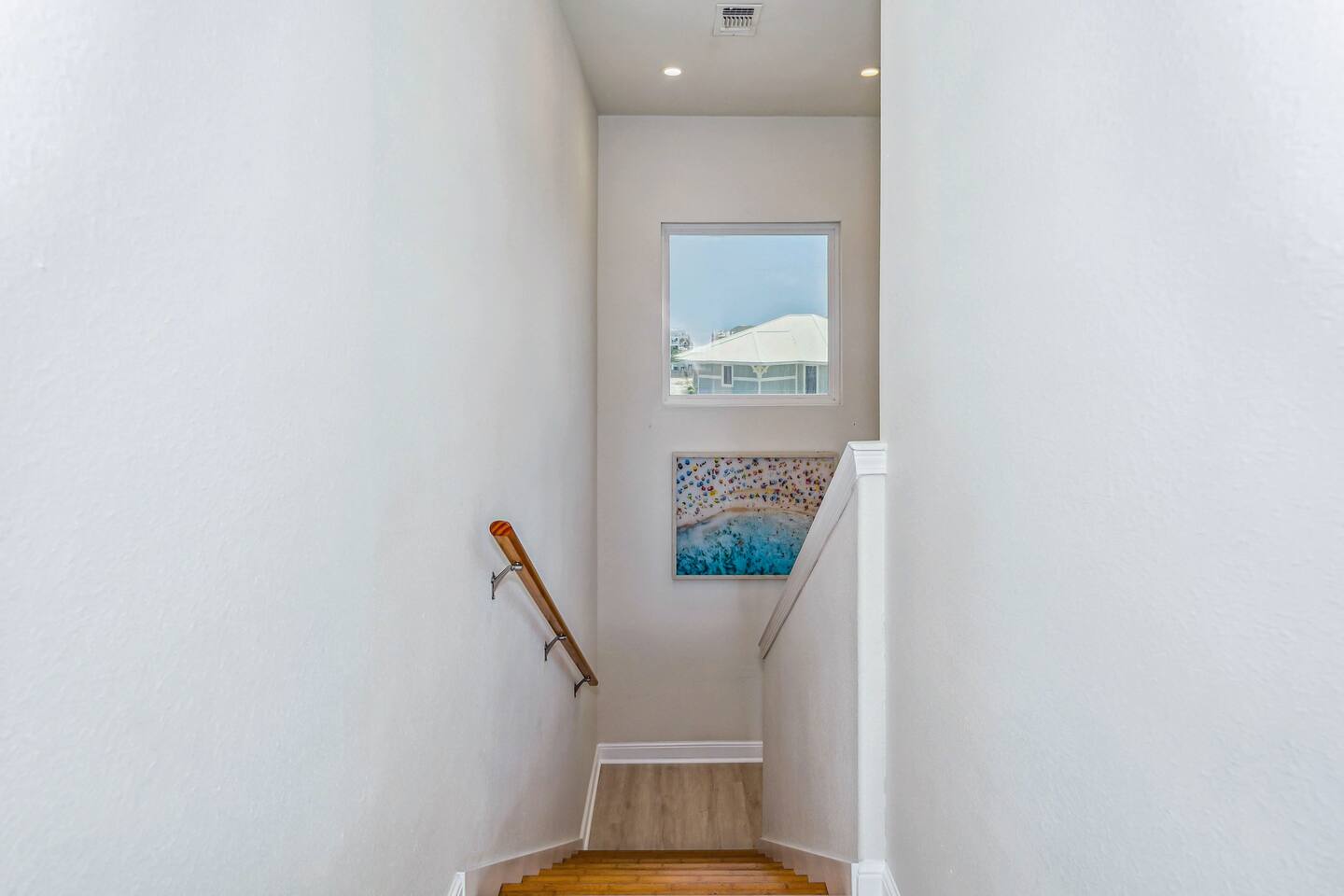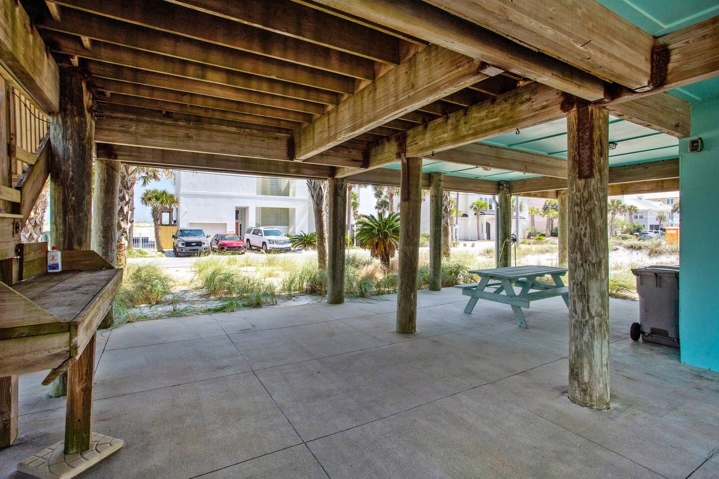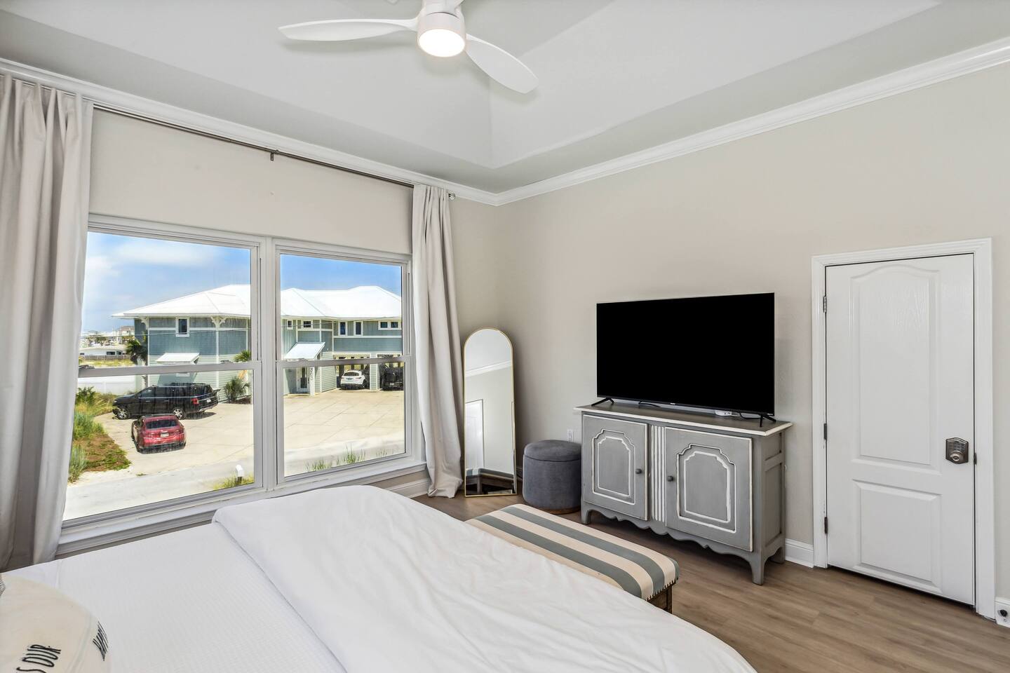 Welcome to Blue Horizon, your dream beach getaway just 20 steps from the white sands of Pensacola Beach! With beautiful gulf views from nearly every room and your own private pool, this is the perfect location for your next trip. Our home is designed to feel inviting for all our guests, even those with tiny toes or four legs. When you step inside, you're greeted by a bright, spacious, and open living space, dining area, and modern kitchen, all flooded with natural light. Look out the windows to see the turquoise Gulf waters just across the street! The main living area boasts comfortable seating and a Smart TV with streaming apps, including our logins for Disney+ and Hulu. The dining table seats eight, with additional seating at the kitchen bar counter. The kitchen is fully stocked with appliances, a spice drawer, and the basics you need to prepare your meals. We also provide a starter supply of coffee and creamer. Down the hall, you'll find a full bathroom and a full-size washer and dryer. This area is also stocked with a blow dryer, steamer, iron, ironing board, and beach towels. The main floor also includes a large bedroom with a fabulous King bed, a Smart TV, and another beautiful water view from its floor-length window. This level features two large decks, one on each end of the home, both offering stunning gulf views. Heading upstairs, you'll find two more bedrooms. One features an inviting King bed, a Smart TV, and French doors leading to a deck where you can catch a beautiful sunset over the Sound or gaze at the Gulf. The second bedroom offers more Gulf views and contains two twin-over-full bunk beds. Both rooms share access to the deck and a bathroom with a walk-in shower. An additional large deck with sun loungers is the perfect spot to soak in the sun as you listen to the waves. Sleeping Arrangements: Bedroom #1 - King bed Bedroom #2 - King bed Bedroom #3 - Two full over twin bunk beds Your Private Outdoor Oasis: The ground level is your hub for outdoor fun! Take a dip in the newly built heated private pool, enjoy a meal at the picnic table, or play a game of cornhole. You'll also find an outdoor rinse-off shower and a grill. Family-Friendly Amenities: - Two Pack 'n Plays with sheets - Portable high chairs and foldable beach/high chairs - Sound machine and a non-WiFi baby monitor - Baby/toddler utensils, cups, and plates - Infant-to-toddler bath and removable wand shower head - Extra blackout curtains, bed bumpers, a baby gate, and outlet covers Beach Gear Provided: - 8 backpack beach chairs - 10 beach towels - Neso beach shade tent and a beach blanket - 3 boogie boards and 1 SUP paddleboard - Beach cart, cooler, sand toys, and sports balls The Neighborhood Our home is perfectly located in a friendly, quiet neighborhood ideal for walking and biking. We're, just a quick walk from numerous cafes, restaurants, and shops. We're are a handful of steps from the sugar-white sand, with public beach access directly across from our yard. We're also just a short walk or bike ride from the Sound, Baby Beach, and numerous cafes, restaurants, and shops along Via De Luna. We have full-time neighbors, so it's important that our guests respect the peaceful atmosphere. Getting Around With direct beach access and shops nearby, the area is very walkable. The local trolley stops are also close and can take you up and down the main strip. For exploring further, the driveway comfortably fits 3 large vehicles. House Rules - To ensure a wonderful stay for you and our neighbors, we ask that you please observe the following rules: - No smoking is permitted anywhere on the property. A fee for cleaning and odor removal will be charged. - No parties or events are permitted. - Overnight guests must not exceed the number listed on the reservation. - Please respect our neighbors and abide by the 10:00 p.m. noise curfew. Noise violations may be grounds for eviction. - We happily welcome well-behaved dogs for a flat fee (per dog; 2 max dogs max). You are responsible for any damage or additional cleaning fees. - Please treat our home and amenities as if they were your own. Important Information - Connectivity: High-speed WiFi is available throughout the home. - Pool Heating: The private pool can be heated upon request for an additional daily fee. Please let us know at the time of booking if you'd like to add this. - Bunk Beds: For safety, the upper bunk beds have a maximum weight limit of 175 pounds. - Grill: Charcoal & gas grills are available for your use. We do not provide charcoal or propane, but previous guests often leave their leftovers. - Check-in/Out: Check-in is 4:00 p.m. and check-out is 10:00 a.m. We may be able to accommodate an early check-in or late check-out if our cleaning schedule allows. - Starter Supplies: We provide starter amounts of laundry detergent, dishwasher tabs, toilet paper, paper towels, trash bags, and coffee to get you settled in. - Ample parking available for 3-4 cars - Smoke alarms, CO2 sensors, and fire extinguishers available - Your Host: I am self-managed, highly responsive host committed to making your stay exceptional. If any issues arise, please don't hesitate to reach out.