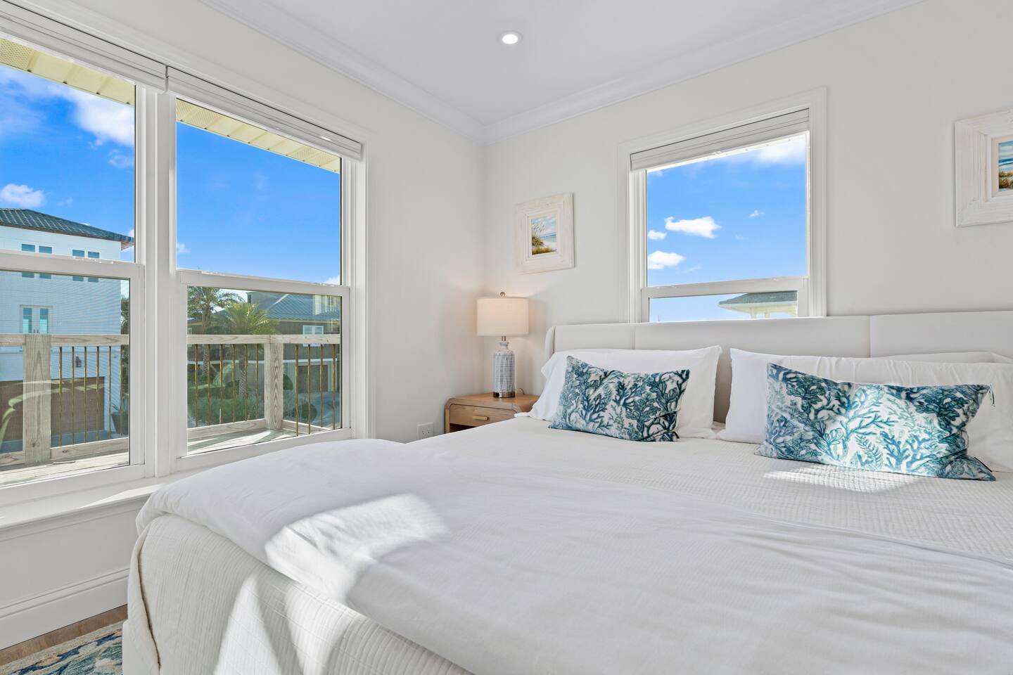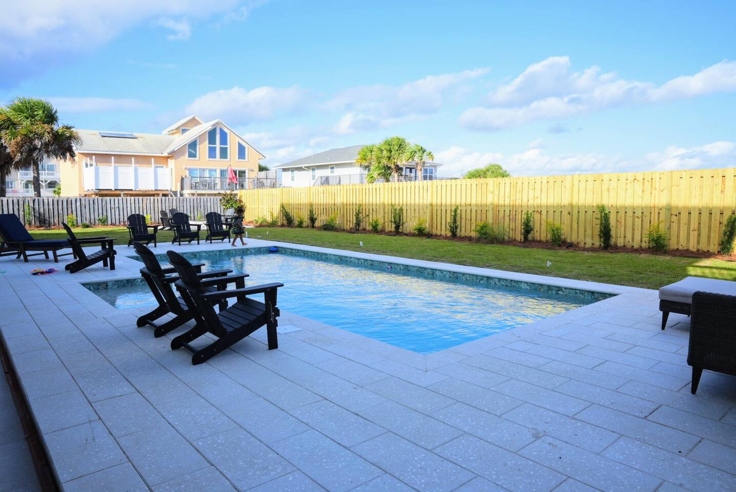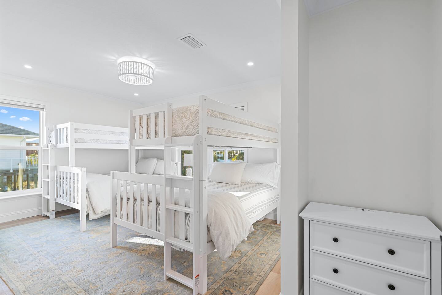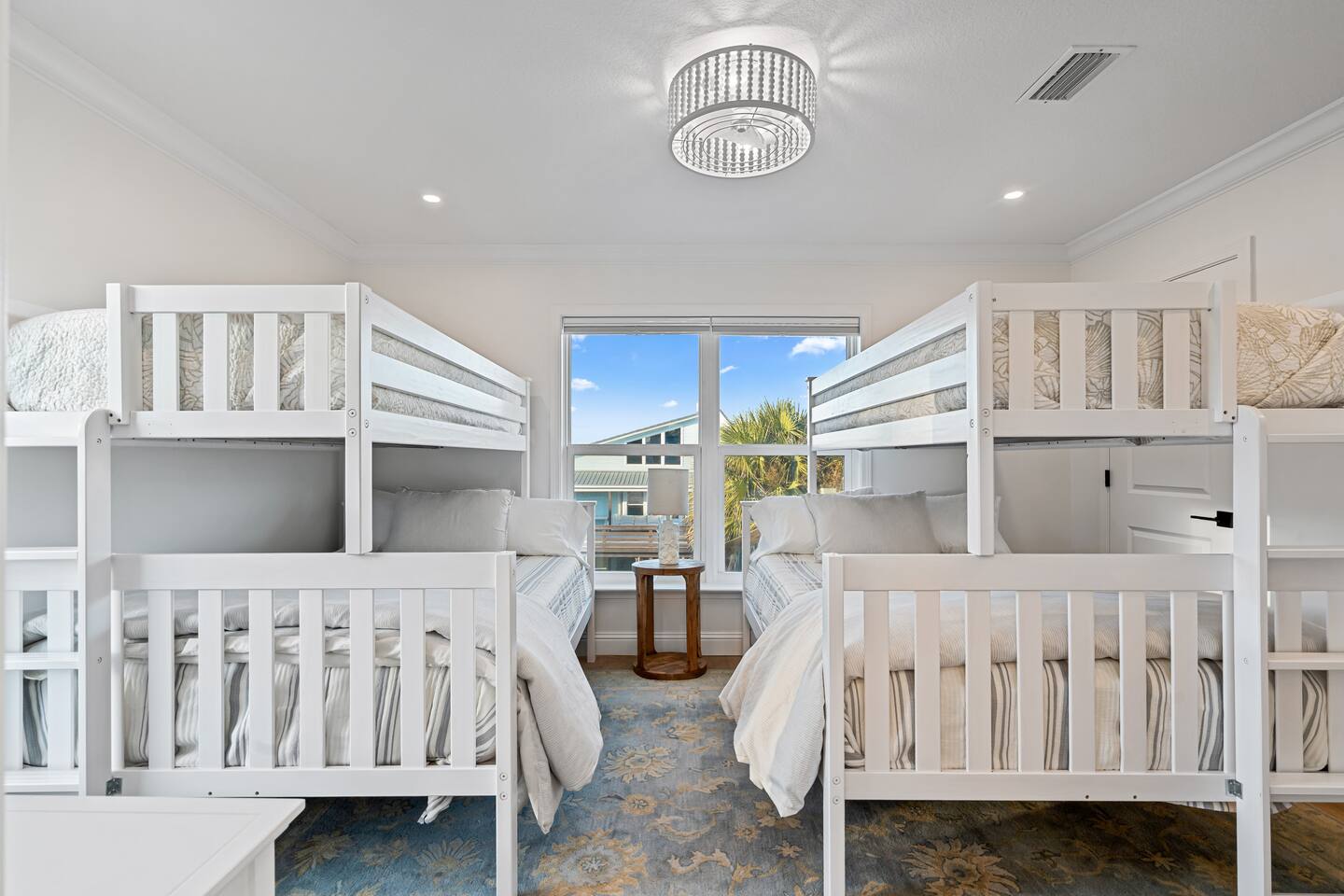 Step inside our bright and welcoming home, where an open and spacious living area, dining room, and kitchen greet you. Large glass doors frame views of the Gulf waters just across the street, filling the space with natural light. The living area features comfortable seating and a Smart TV, with a cozy nook perfect for relaxing with a book while taking in the view. The fully stocked kitchen is a chef's dream, complete with a spice drawer, air fryer, crock pot, Keurig, and traditional coffee maker. We provide a starter supply of coffee, creamer, and sugar to get your vacation started right. The dining table seats 10, with additional seating at the large kitchen island. For entertainment, you'll find a Nintendo Switch and a collection of board games, ensuring fun for all ages on rainy days or quiet evenings in. Sleeping Arrangements: Our home comfortably sleeps your entire group across five thoughtfully appointed bedrooms. - East Wing Bedroom 1: King Bed, Smart TV, Water Views - East Wing Bedroom 2: Two Queen Beds, Water Views - West Wing Bedroom 1: King Bed, Smart TV, Water Views - West Wing Bedroom 2: King Bed, Smart TV - Bunk Room: Two Twin-over-Full Bunk Beds, Smart TV, En-suite Bathroom (Note: Top bunks have a 220 lb weight limit). Your Private Outdoor Oasis: Through the large glass doors at the rear of the home, a deck leads down to your private, fully-fenced backyard. The star of the show is the brand-new 30’ pool, featuring a sun ledge perfect for lounging. The pool area is surrounded by ample seating, sun loungers, and a beautiful lawn for games like corn hole. Enjoy a meal at the picnic tables, cook up a feast on the XXL Green Egg or the plumbed natural gas grill, and gather around the fire pit in the evening. A large outdoor shower is perfect for rinsing off after a day at the beach. Family-Friendly Amenities: - A Pack 'n Play with sheet - Bumbo (functions as high chair) and foldable beach/high chair with tray - Sound machine and a non-WiFi baby monitor - Baby/toddler utensils, cups, and plates - Bathtub and removable wand shower head - Extra blackout curtains, bed bumper, a baby gate, and outlet covers Beach Equipment Provided: - 10 backpack beach chairs & 15 beach towels - Inflatable SUP paddleboards and a tandem kayak - Beach cart, cooler, boogie boards, and sand toys - Shibumi beach shade tent The Neighborhood Sea'scape is perfectly located in a friendly, quiet neighborhood ideal for walking and biking. You are less than a minute from the sugar-white sand, with public beach access diagonally across from our yard. You're also just a short walk or bike ride from the Sound, Baby Beach, and numerous cafes, restaurants, and shops along Via De Luna. Getting Around The area is highly walkable and bike-friendly. For exploring further, trolley stops are located nearby (including one at Avenida 17) and can take you up and down the main strip during peak seasons. House Rules - We happily welcome well-behaved dogs for a flat fee. - For the safety of our guests, the top bunks have a weight limit of 220 pounds. - Please treat our home and amenities as if they were your own. Important Information - Home Layout: Our home is an elevated, single-level living space. The main house, including all bedrooms and living areas, is on one floor. Stairs provide access from the main level down to the ground-level pool, yard, and storage area. - Connectivity: High-speed WiFi is available throughout the home. - Provided Supplies: We provide a starter supply of essentials like coffee, toilet paper, soap, shampoo, and detergent to help you settle in. - Ample parking available for 10-12 cars - Smoke alarms, CO2 sensors, and fire extinguishers available - Your Host: I am self-managed, highly responsive host committed to making your stay exceptional. If any issues arise, please don't hesitate to reach out.