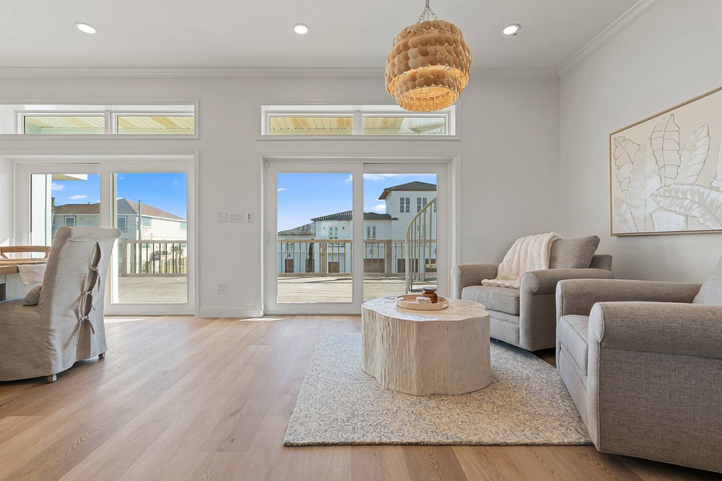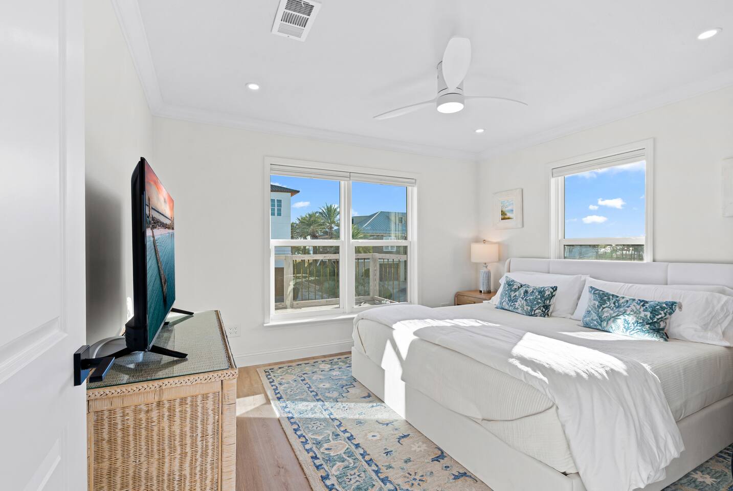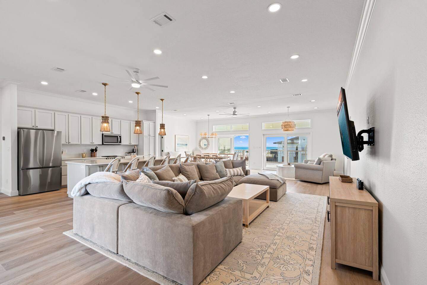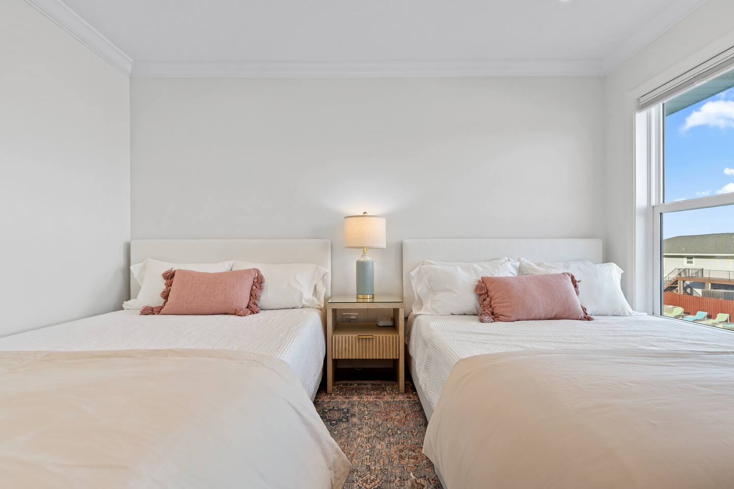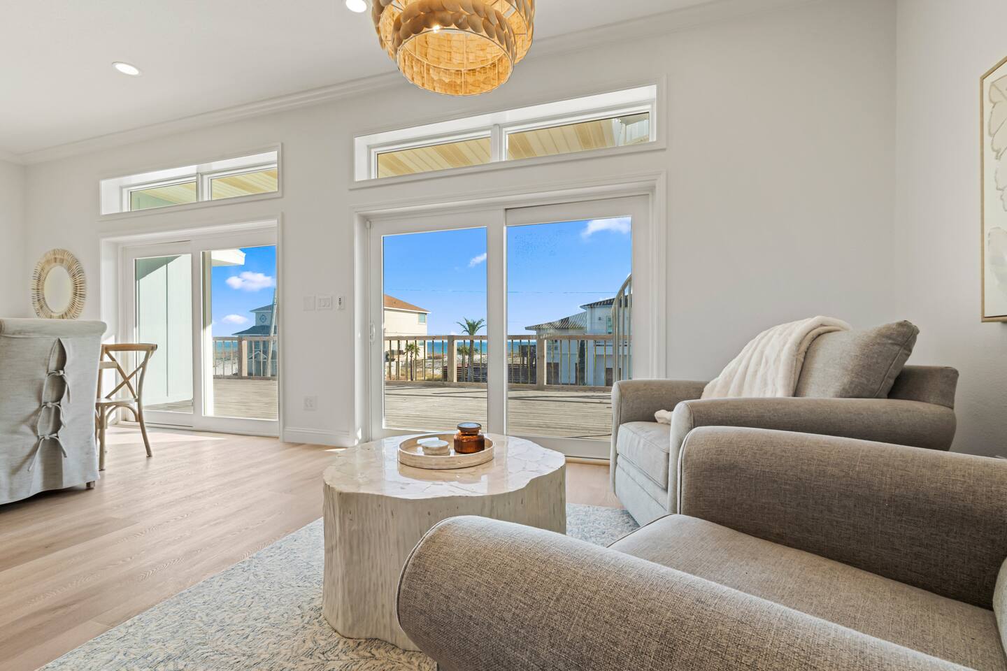 Step inside our bright and welcoming home, where an open and spacious living area, dining room, and kitchen greet you. Large glass doors frame views of the Gulf waters just across the street, filling the space with natural light. The living area features comfortable seating and a Smart TV, with a cozy nook perfect for relaxing with a book while taking in the view. The fully stocked kitchen is a chef's dream, complete with a spice drawer, air fryer, crock pot, Keurig, and traditional coffee maker. We provide a starter supply of coffee, creamer, and sugar to get your vacation started right. The dining table seats 10, with additional seating at the large kitchen island. For entertainment, you'll find a Nintendo Switch and a collection of board games, ensuring fun for all ages on rainy days or quiet evenings in. Sleeping Arrangements: Our home comfortably sleeps your entire group across five thoughtfully appointed bedrooms. - East Wing Bedroom 1: King Bed, Smart TV, Water Views - East Wing Bedroom 2: Two Queen Beds, Water Views - West Wing Bedroom 1: King Bed, Smart TV, Water Views - West Wing Bedroom 2: King Bed, Smart TV - Bunk Room: Two Twin-over-Full Bunk Beds, Smart TV, En-suite Bathroom (Note: Top bunks have a 220 lb weight limit). Your Private Outdoor Oasis: Through the large glass doors at the rear of the home, a deck leads down to your private, fully-fenced backyard. The star of the show is the brand-new 30’ pool, featuring a sun ledge perfect for lounging. The pool area is surrounded by ample seating, sun loungers, and a beautiful lawn for games like corn hole. Enjoy a meal at the picnic tables, cook up a feast on the XXL Green Egg or the plumbed natural gas grill, and gather around the fire pit in the evening. A large outdoor shower is perfect for rinsing off after a day at the beach. Family-Friendly Amenities: - A Pack 'n Play with sheet - Bumbo (functions as high chair) and foldable beach/high chair with tray - Sound machine and a non-WiFi baby monitor - Baby/toddler utensils, cups, and plates - Bathtub and removable wand shower head - Extra blackout curtains, bed bumper, a baby gate, and outlet covers Beach Equipment Provided: - 10 backpack beach chairs & 15 beach towels - Inflatable SUP paddleboards and a tandem kayak - Beach cart, cooler, boogie boards, and sand toys - Shibumi beach shade tent The Neighborhood Sea'scape is perfectly located in a friendly, quiet neighborhood ideal for walking and biking. You are less than a minute from the sugar-white sand, with public beach access diagonally across from our yard. You're also just a short walk or bike ride from the Sound, Baby Beach, and numerous cafes, restaurants, and shops along Via De Luna. Getting Around The area is highly walkable and bike-friendly. For exploring further, trolley stops are located nearby (including one at Avenida 17) and can take you up and down the main strip during peak seasons. House Rules - We happily welcome well-behaved dogs for a flat fee. - For the safety of our guests, the top bunks have a weight limit of 220 pounds. - Please treat our home and amenities as if they were your own. Important Information - Home Layout: Our home is an elevated, single-level living space. The main house, including all bedrooms and living areas, is on one floor. Stairs provide access from the main level down to the ground-level pool, yard, and storage area. - Connectivity: High-speed WiFi is available throughout the home. - Provided Supplies: We provide a starter supply of essentials like coffee, toilet paper, soap, shampoo, and detergent to help you settle in. - Ample parking available for 10-12 cars - Smoke alarms, CO2 sensors, and fire extinguishers available - Your Host: I am self-managed, highly responsive host committed to making your stay exceptional. If any issues arise, please don't hesitate to reach out.
